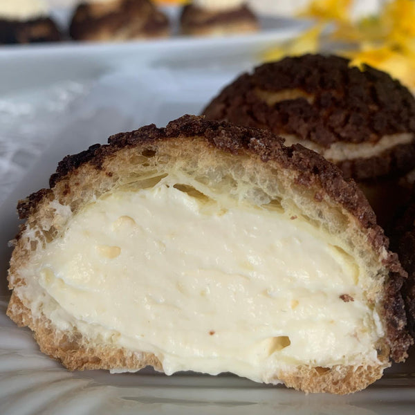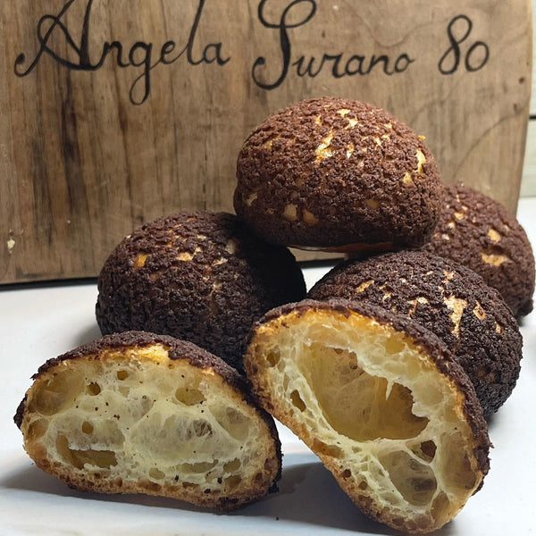 Una volta raffreddati, si tagliano i bignè a metà oppure fate un foro dalla base e si farciscono con crema al cioccolato. Ecco che i nostri bignè craquelin sono pronti per essere gustati…e che sapore! Buon appetito!!!