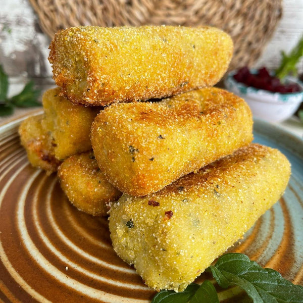 Bagnatevi le mani e prelevate un po’ di impasto, posizionate al centro il formaggio tagliato lungo 5 cm circa (vedi video). Richiudete l’impasto e dategli la forma ciclindrica, tipica dei panzarotti.Preparatevi per la panatura, in un piatto disponete la farina di mais o pangrattato. Fate rotolare i crocché nella farina e riponete tutti i crocchè che avete preparato su una teglia. Nel frattempo mettete a scaldare in una padella sul fuoco l’olio di semi di arachidi. Quando sarà caldo potrete cominciare a friggere i crocchè , pochi per volta.Quando saranno ben dorati prelevateli con la schiumarola e poggiateli su di un piatto con carta assorbente. Servite i crocchè di patate ancora caldi e filanti….