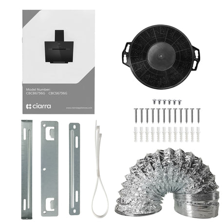 CIARRA Cappa A Parete viene fornito con i seguenti articoli nella scatola:
