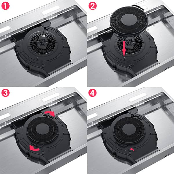 - Si consiglia di sostituire il filtro a carbone della cappa da cucina una volta ogni 2-4 mesi