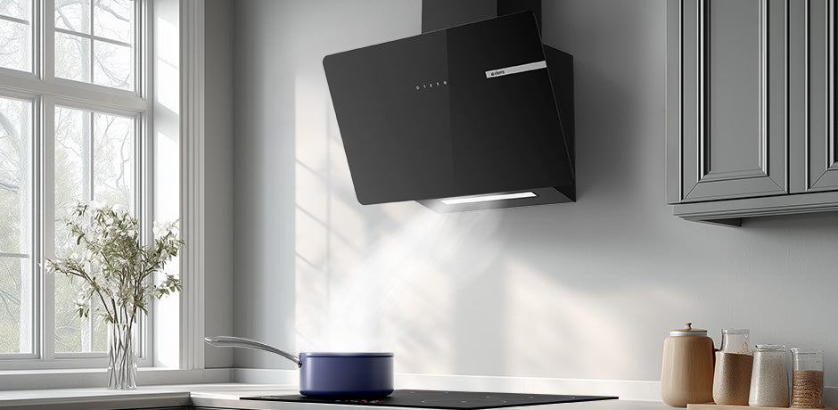 | Materiale della cappa | Vernice nera e vetro |