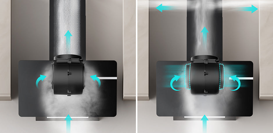 - Alta capacità di aspirazione: 580 m³/h con basso rumore (64 dB).