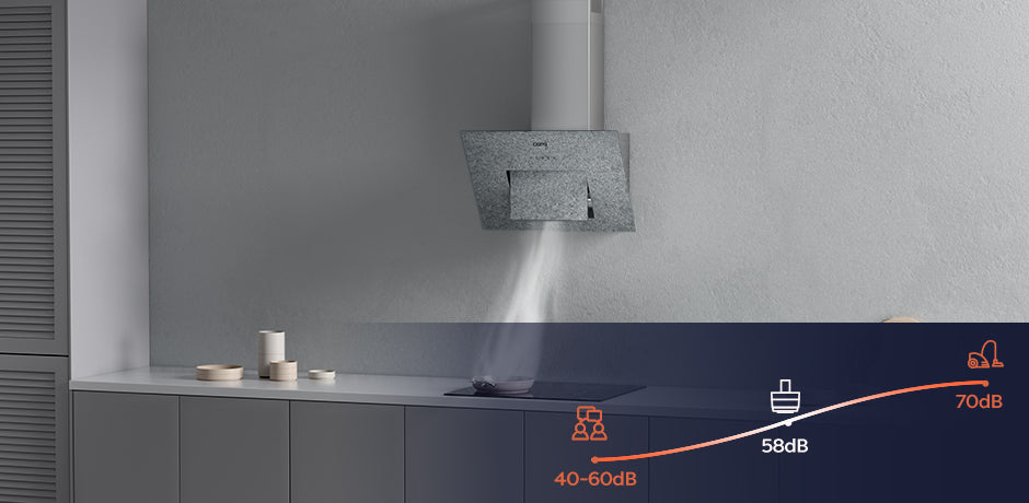 Materiale della cappa da cucinaAcciaio inox e vetro grigio