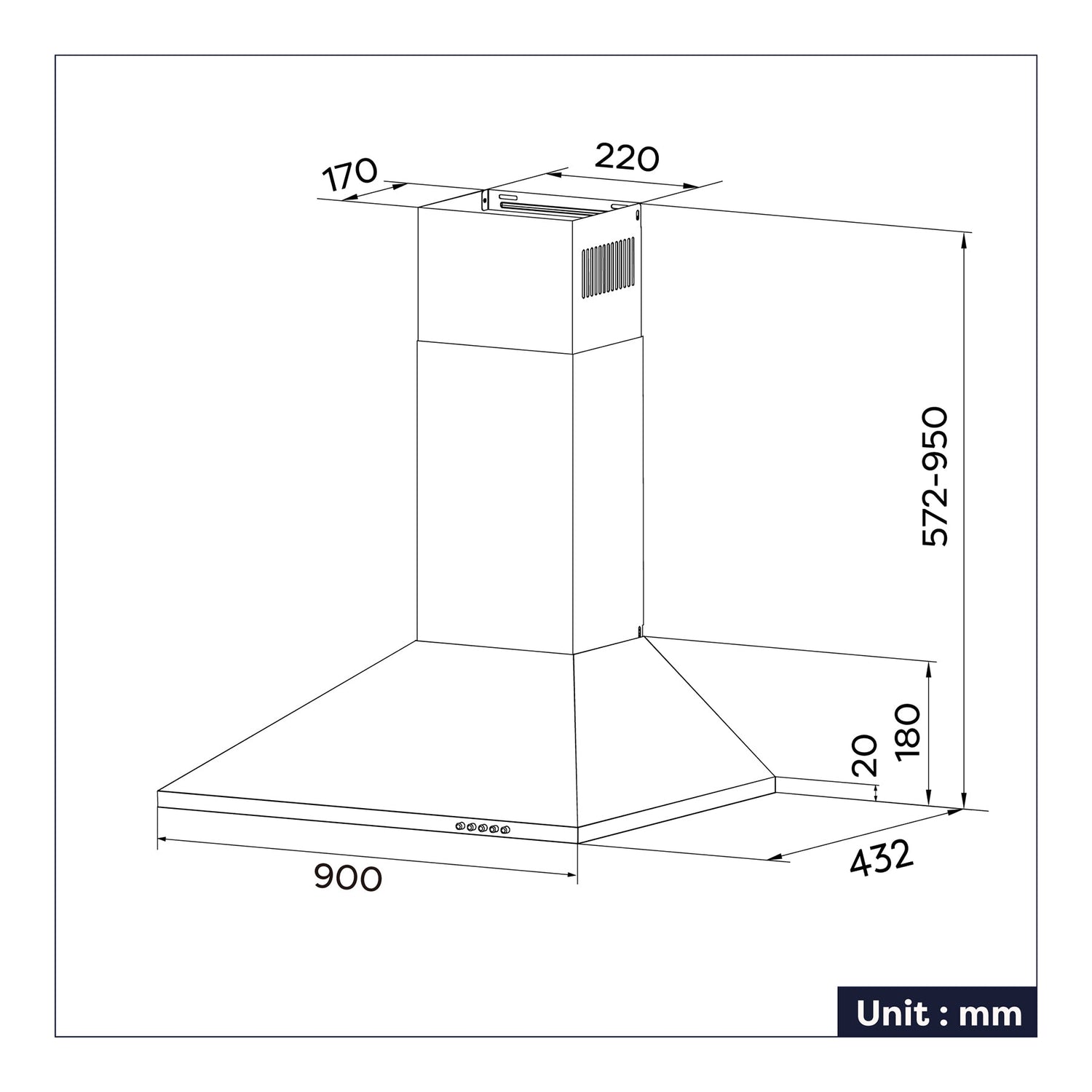 Ciarra 90cm Cappa a parete a piramide CBCS9201-OW