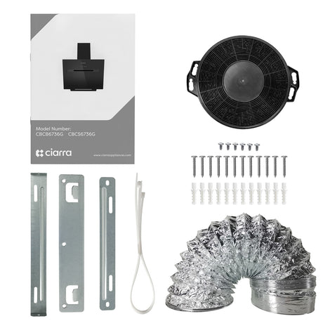 CIARRA Cappa A Parete viene fornito con i seguenti articoli nella scatola: