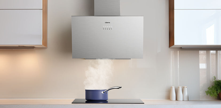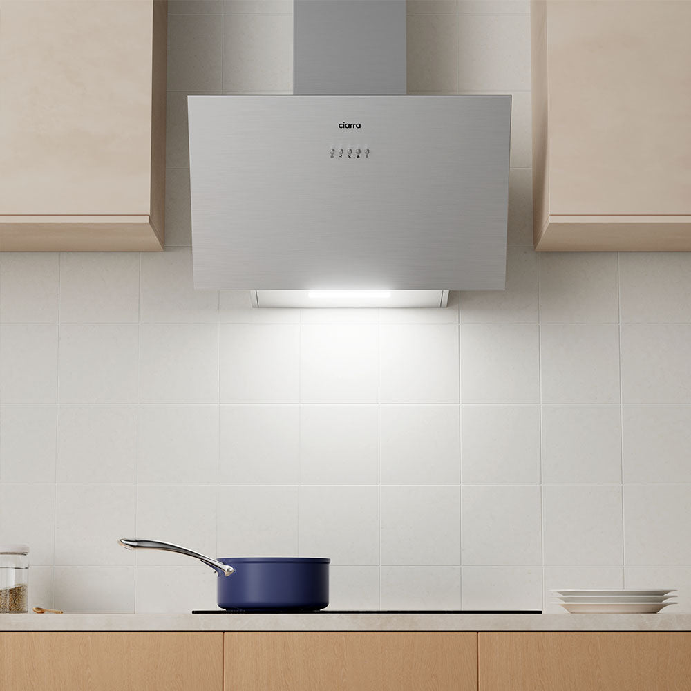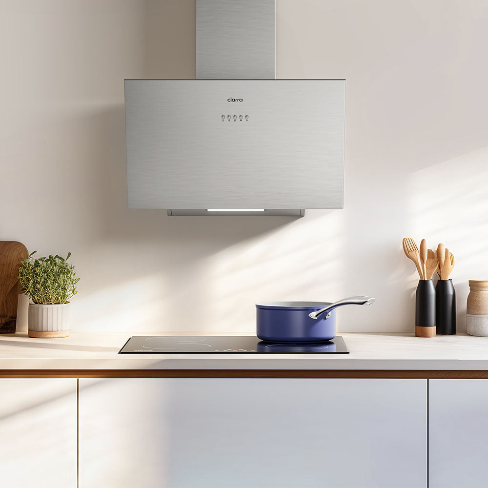 Ciarra Cappa Aspirante Cappa Cucina parete Inclinata 60cm Modalità Riciclo o Estrazione Design Acciaio Inossidabile CBCS6762A-OW