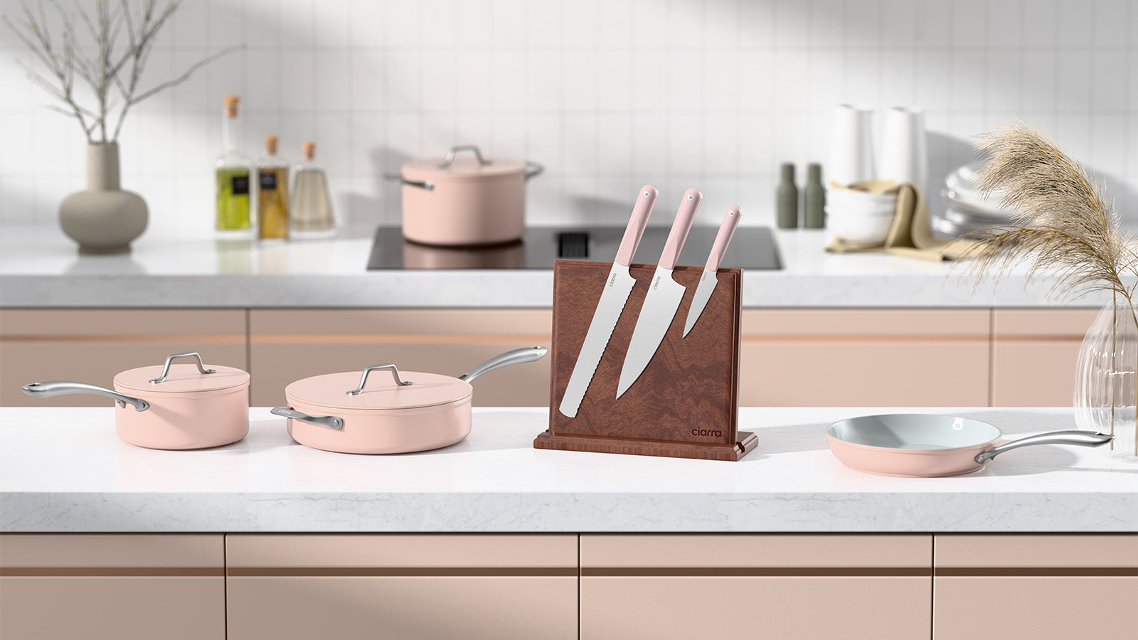 Ciarra Beyond Trio Knife Set con scatola regalo, con coltello da chef, coltello da pane seghettato e coltello multiuso, acciaio inossidabile ad alto tenore di carbonio con impugnatura ergonomica | Sakura Candy