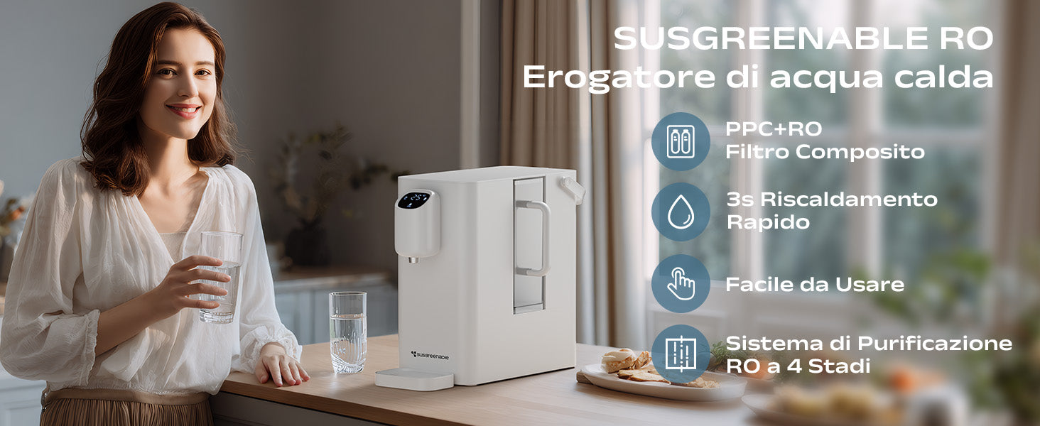 Ciarra x Susgreenable Dispenser Acqua a Osmosi Inversa 4-in-1 – Acqua Calda Istantanea in 3s, Nessuna Installazione, Efficienza 3:1, SGIWDR04-W