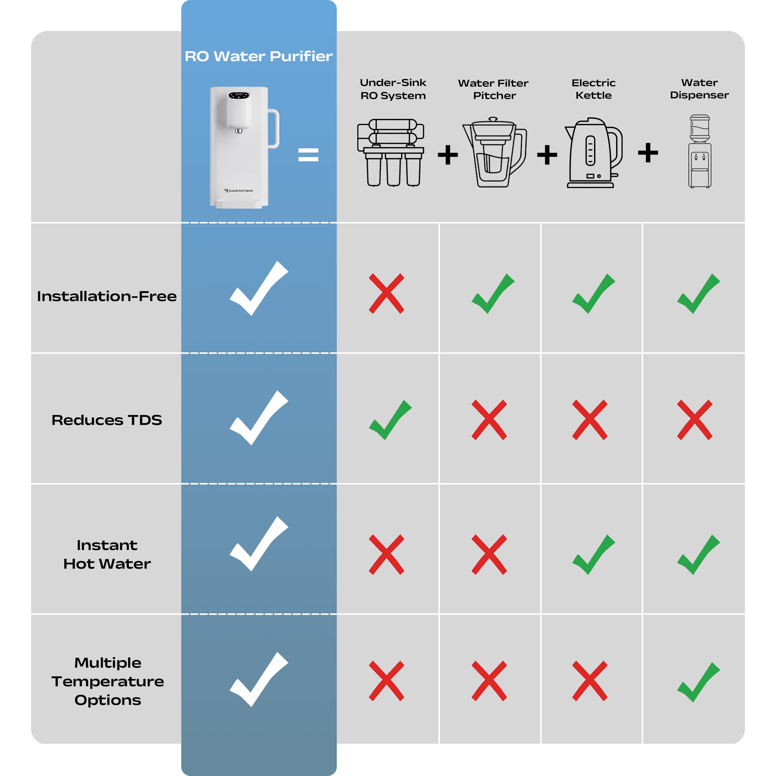 • 🛡️ Addio Calcare e Filtrazione 4-in-1 Progettato per le zone con acqua dura. Il sistema PPC+RO elimina il 99% di calcare, cloro e nitrati. Goditi acqua pura dal sapore eccezionale, senza residui bianchi nel bollitore.