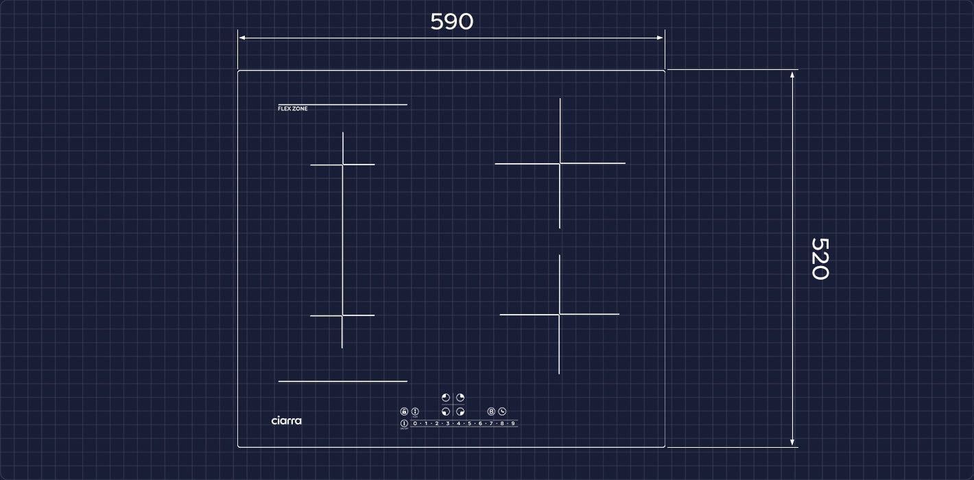 Ciarra Piastra a Induzione Piano cottura a induzione da incasso a 4 fuochi con Boost e FlexZone CBBIH4BF-OW