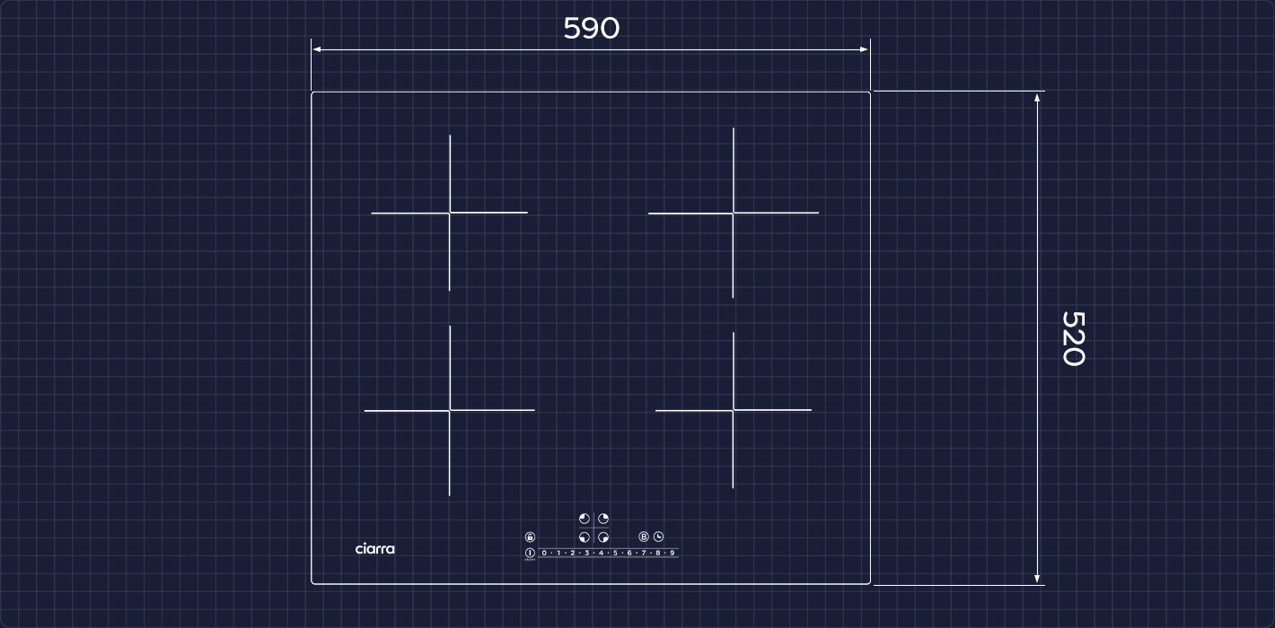 Ciarra Piastra Piano Cottura Induzione Incasso 4 fuochi Con Boost CBBIH4B-OW