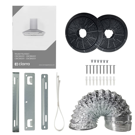 CIARRA Cappa A Parete viene fornito con i seguenti articoli nella scatola: