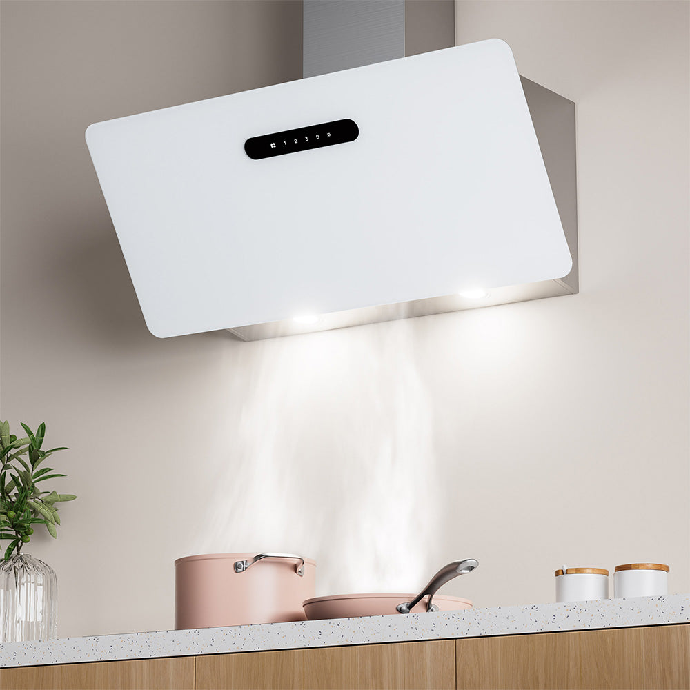 | Materiale della cappa da cucina | acciaio inossidabile e bianca vetro |