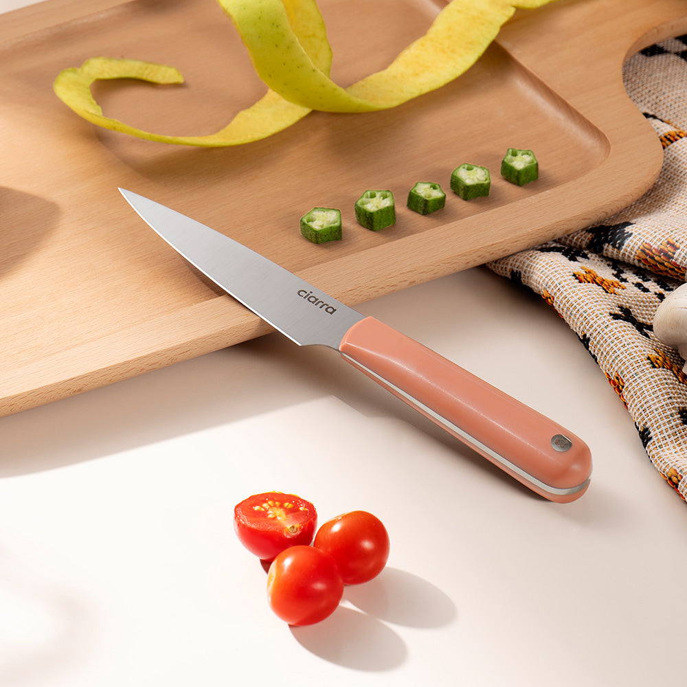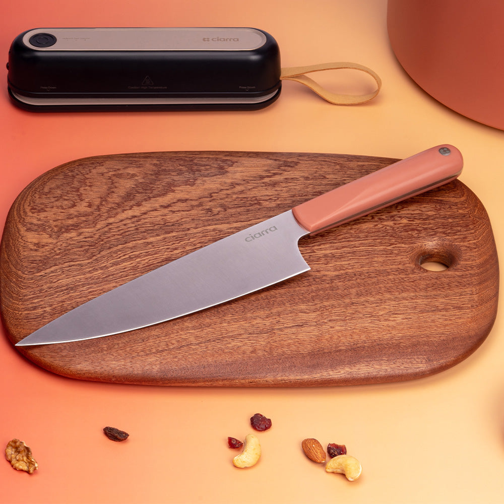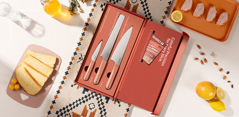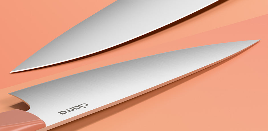 | Lunghezza lama | Coltello da chef: 8,3 pollici / 210 mm Coltello per il pane: 9,5 pollici / 241 mm Coltello multiuso: 4,3 pollici / 110 mm |