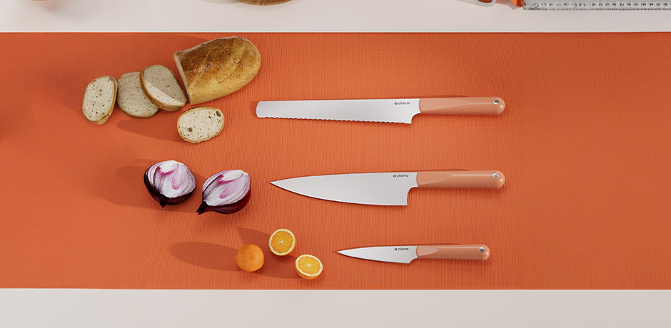 | Lunghezza coltello | Coltello da chef: 336 mm Coltello per il pane: 365 mm Coltello multiuso: 215 mm |