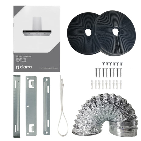 CIARRA Cappa A Parete viene fornito con i seguenti articoli nella scatola: