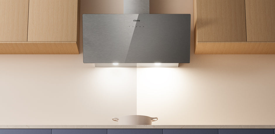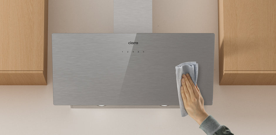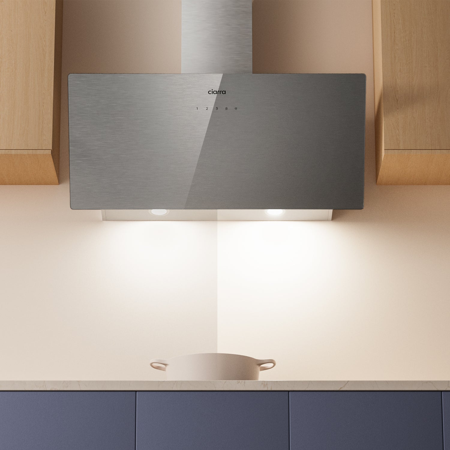 CIARRA Cappa Verticale Parete in vetro argento spazzolato da 90cm con controllo touch A+++ CBCS9736H-S