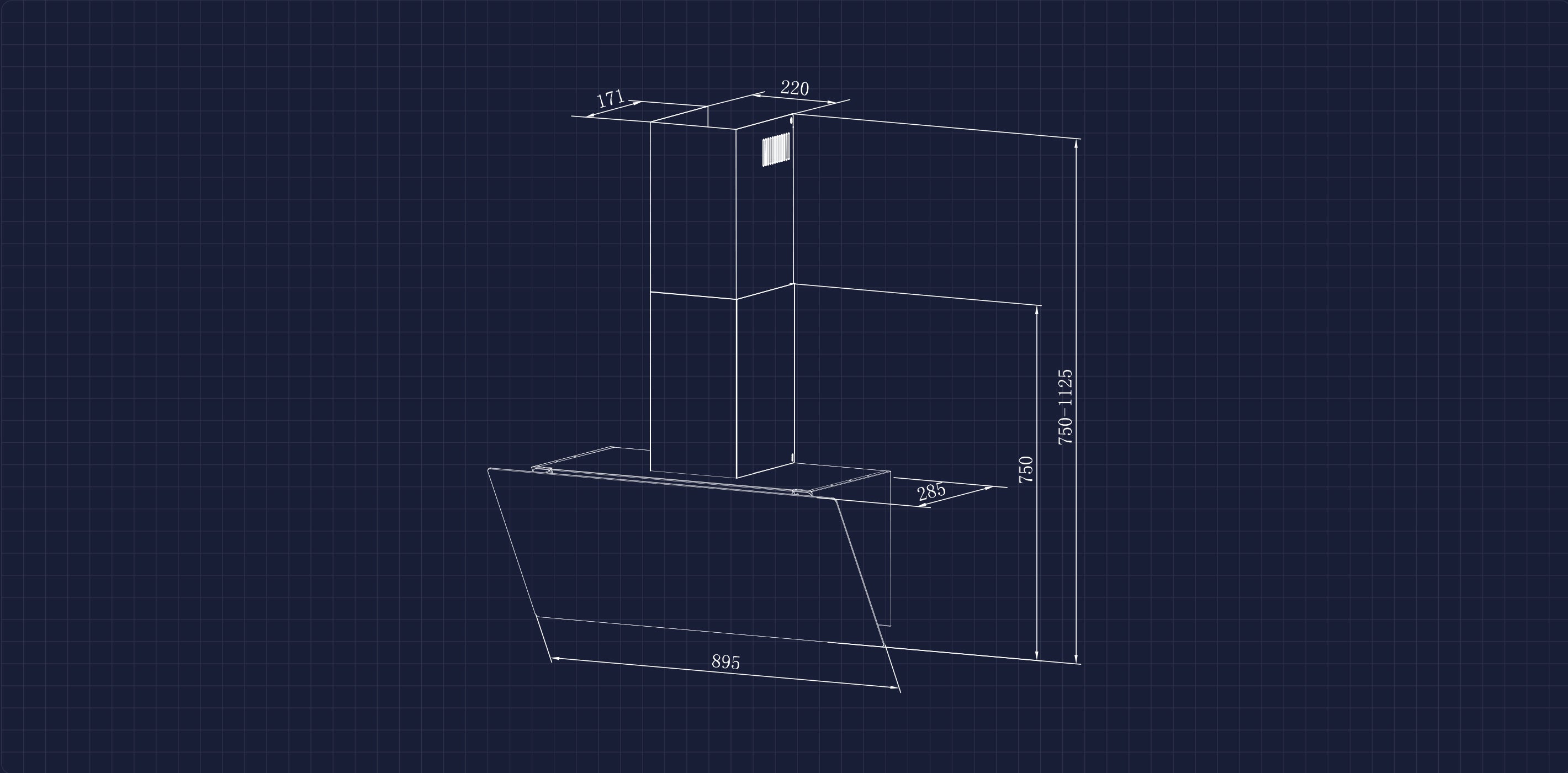 | Materiale della cappa da cucina | pittura nera e vetro |