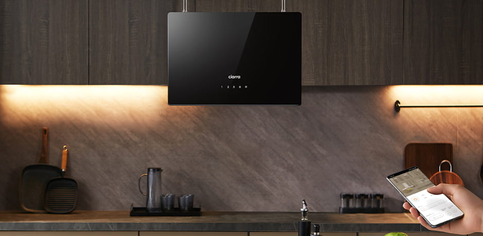| Materiale della cappa da cucina | Pittura nera e vetro |